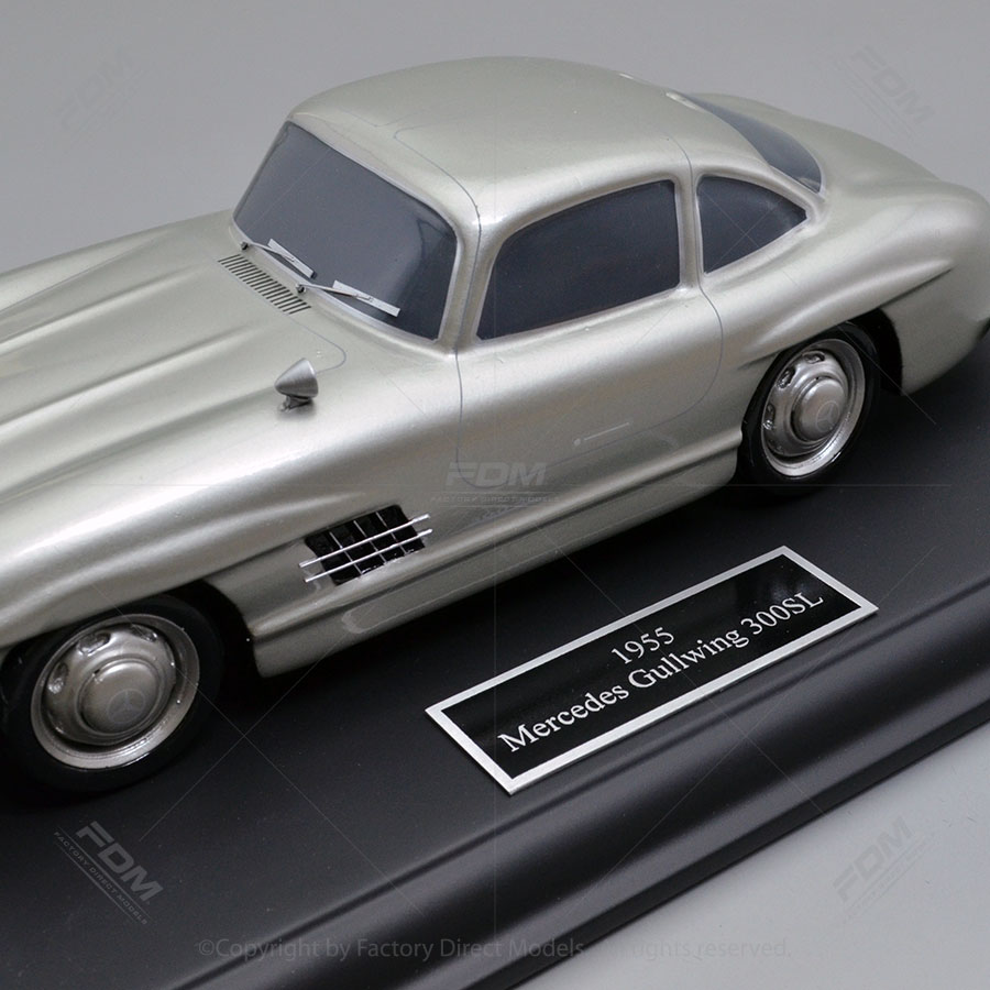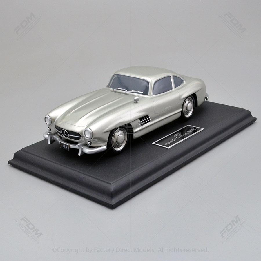 This Mercedes-Benz 300 SL Scale Model, a collector series model comes with a black display stand.
